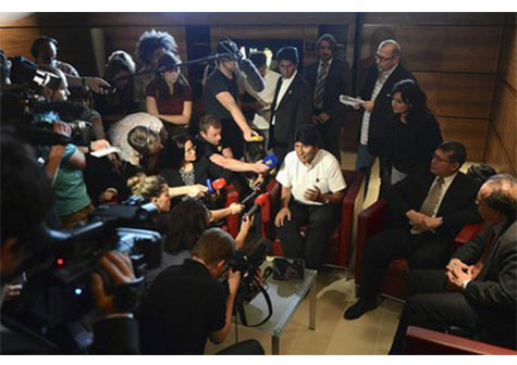"Esto es un pretexto para tratar de amedrentarme, para intimidarme y escarmentarme. Un pretexto sobre todo para tratar de acallarnos en la lucha contra las políticas económicas de dominación", declaró Morales, en relación a las acusaciones de que llevaba a Edward Snowden en su avión presidencial.