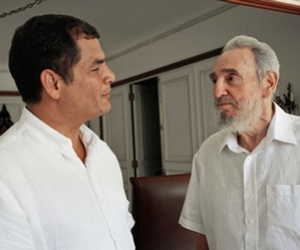 Poco más de la media noche, Correa dijo a la prensa acreditada que dialogó este viernes con Fidel Castro por más de dos horas durante la única jornada de su estancia en este país, a donde llegó por la provincia de Santiago de Cuba para una visita de trabajo.