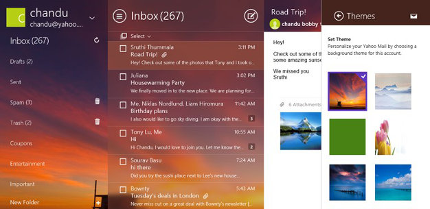 La nueva interfaz de Yahoo! Mail está basada en un diseño con transparencias que permite el uso de diversas imágenes de Flickr como temas de fondo, las cuales, a su vez, están sincronizadas en todos los dispositivos y plataformas que utilice el usuario.