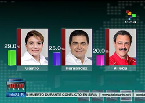 Radio Globo dio a conocer que los resultados se mantendrían con el Partido Libre, liderando la jornada electoral con Xiomara Castro, 29 por ciento, Partido Nacional de Juan Orlando Hernández; 25 por ciento y el Partido Liberal de Mauricio Villeda; 20 por ciento.