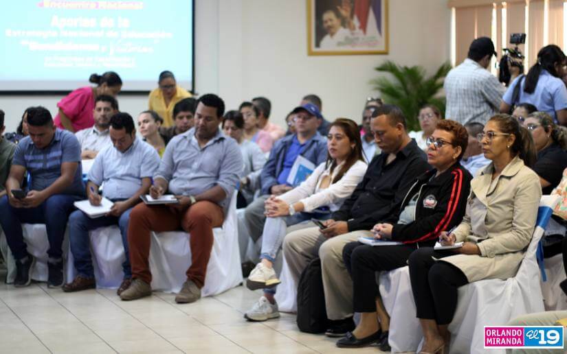 “En este encuentro tiene como fin, intercambiar lo que hemos venido desarrollando, enriqueciendo con las familias, protagonistas, docentes, directivos del CNU y de los Centros Educativos del Mined, toda la comunidad educativa aportando y comprometidos en fortalecer la Estrategia Nacional, pero también a implementarla desde estos 16 ejes, que nos viene a mejorar el desarrollo de competencias en aporte al desarrollo socioproductivo del país”, dijo.