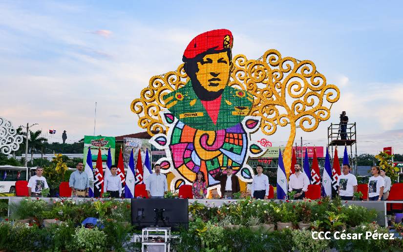 Desde la Avenida de Bolívar a Chávez, el Presidente Comandante Daniel Ortega Saavedra y la Vicepresidenta Compañera Rosario Murillo, presiden el acto glorioso en celebración del heroísmo del pueblo nicaragüense, entregando nuevas unidades de buses a cooperativas de transporte intermunicipal.