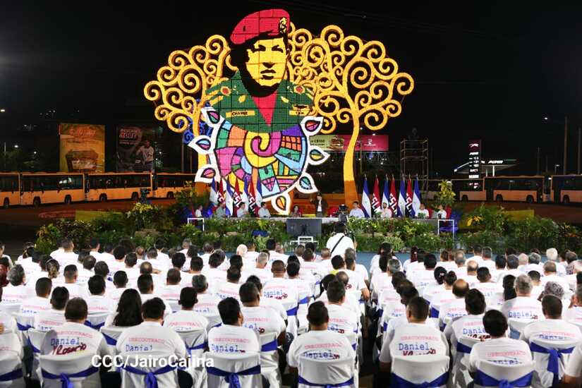 El Presidente de la República, Comandante Daniel Ortega Saavedra, en el acto de entrega de nuevas unidades de autobuses a las cooperativas de transporte intermunicipal, destacó que la recién inaugurada ruta marítima comercial directa entre Nicaragua y la República Popular China, ayudará a potenciar las relaciones económicas y de solidaridad entre ambas naciones y pueblos.