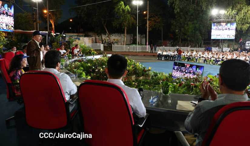 “Esa voz que hemos escuchado hace poco entonando esa bella canción es de otro querido hermano artista, actor extraordinario, cantante extraordinario, compositor extraordinario que mañana 23 de agosto estará de cumpleaños en otro plano de vida, nuestro querido hermano Otto de la Rocha”, resaltó el comandante Daniel, al saludar a jóvenes del Ballet Folclórico Guardabarranco de León, que bailaron la pieza musical “Managua Linda Managua", escrita y compuesta por don Otto.