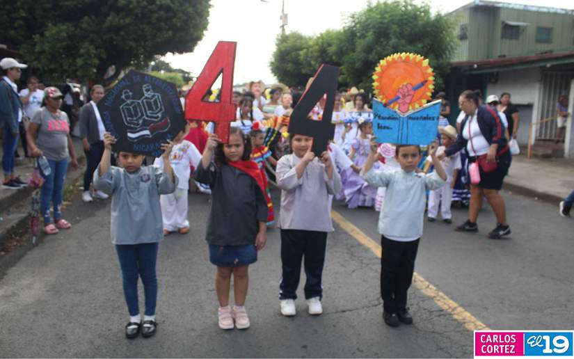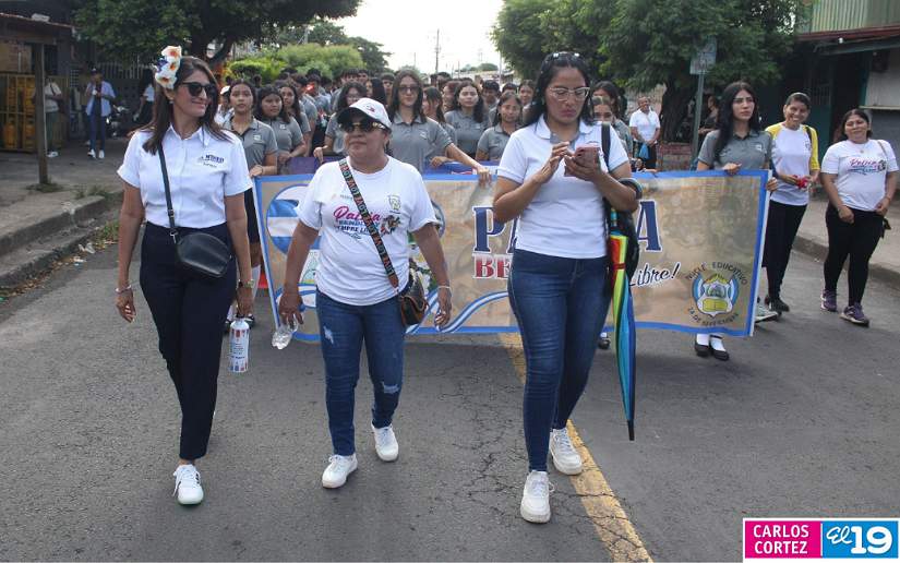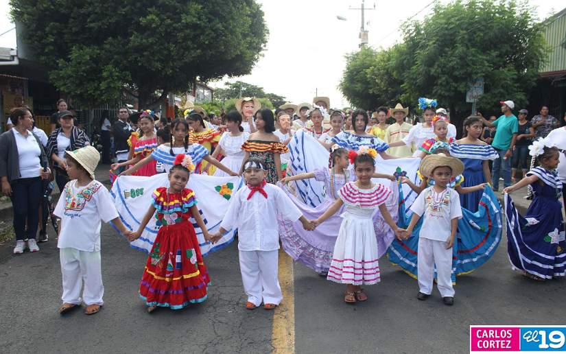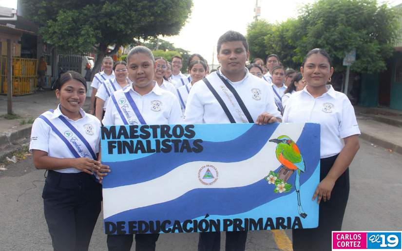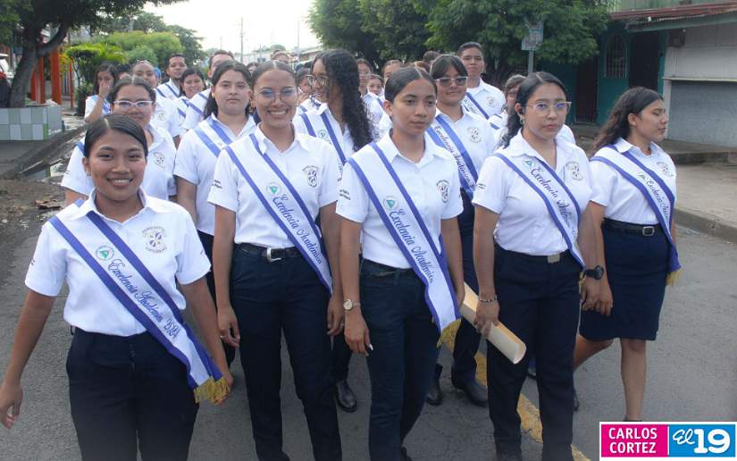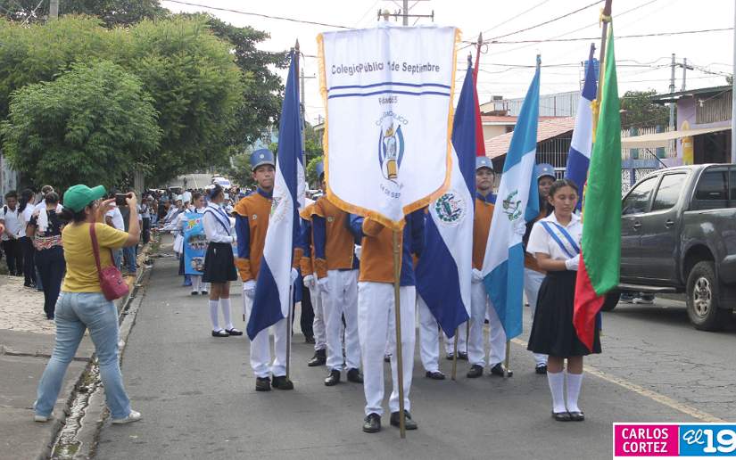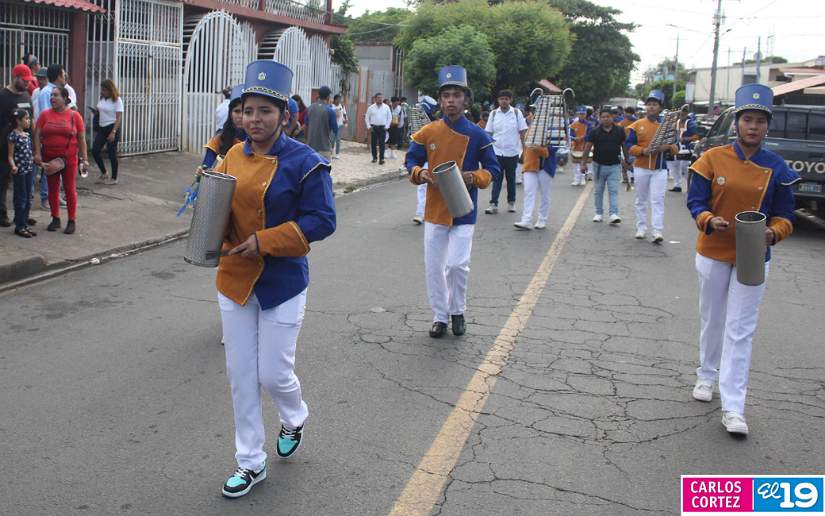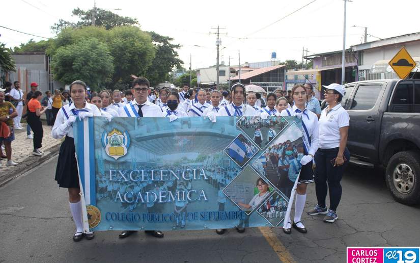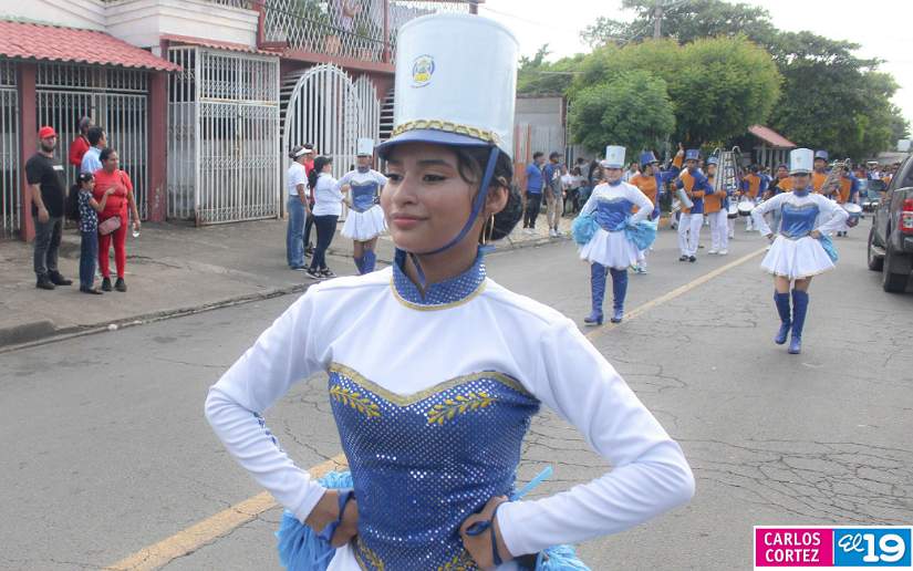 En saludo a las Fiestas Patrias, en el Distrito V, el Ministerio de Educación (Mined), organizó el segundo desfile escolar con un derroche cultural y artístico protagonizado por la banda y gimnasia rítmica, así como estudiantes del Colegio Público 14 de Septiembre, Escuela Normal de Formación Superior Alesio Blandón y Colegio Josefa Toledo de Aguerri.