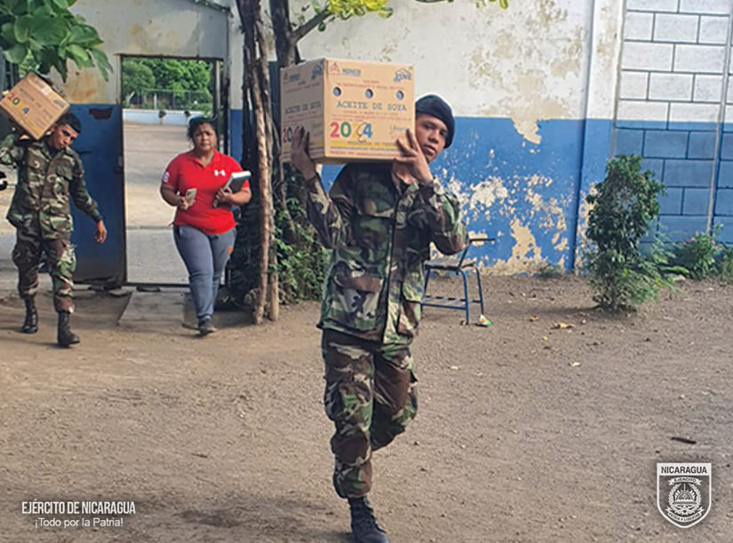 El Ejército de Nicaragua consecuente con el lema de que “Somos el Pueblo mismo uniformado trabajando en su propio beneficio”, el 24 y 25 de agosto de 2024, a través de la Brigada de Infantería Mecanizada “General Augusto C. Sandino”, en coordinación con el Ministerio de Educación (MINED), realizó el cargue de 36 toneladas métricas de alimentos (arroz, frijoles, maíz, cereal) y 513 galones de aceite. Posteriormente, se trasladó y descargó en diferentes colegios del municipio de Ciudad Sandino, departamento de Managua, beneficiando a 4,437 estudiantes.