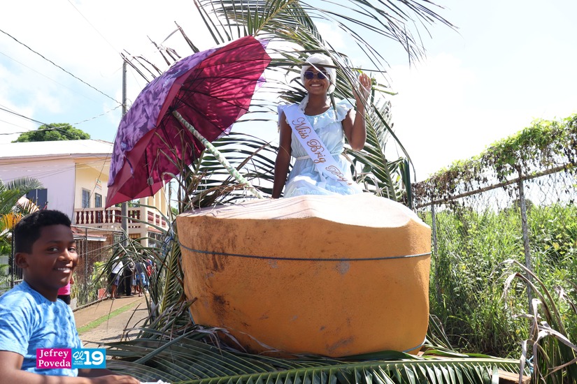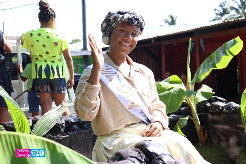 "Celebramos la emancipación de nuestro pueblo y estoy muy orgullosa de estar participando aquí y ser la reina electa del año 2023. Toda la comunidad participa ya sea los que desfilamos aquí caminando o los que nos esperan en sus casas hacen sopa, comida para ver pasar las carrozas", dijo Brittany.
