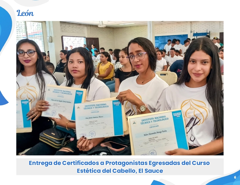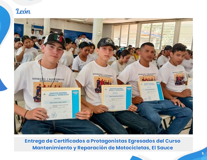 • También fotografías de la entrega de certificados a protagonistas egresados en los municipios: El Sauce, Dipilto y San Miguelito.