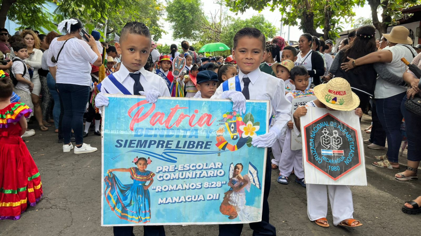En saludo al 203 aniversario de la firma del acta de la independencia de Centroamérica y el 168 de la batalla de San Jacinto, los colegios públicos del distrito II de Managua desfilaron en los alrededores de sus respectivas jurisdicciones.