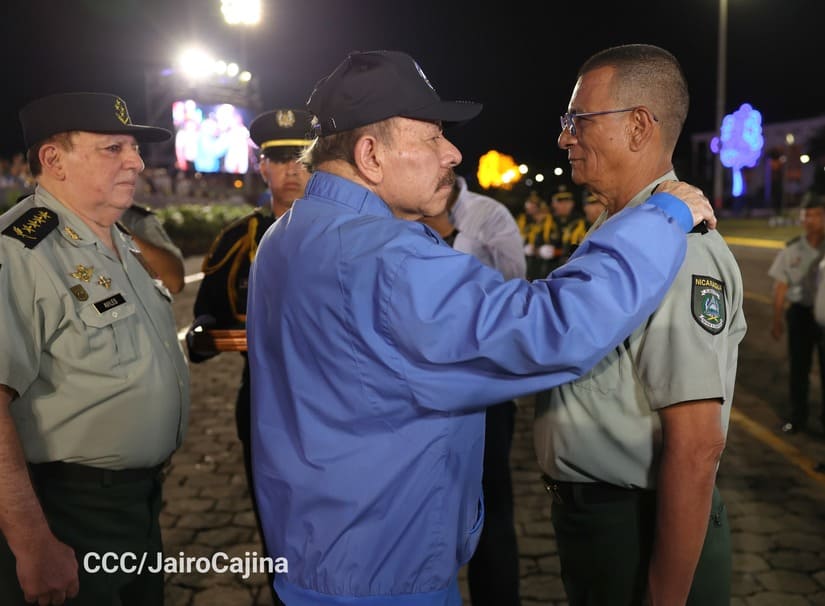 En nombre del Ejército de Nicaragua, de la Comandancia General y del mío propio felicito a los condecorados por haber obtenido este significativo reconocimiento.