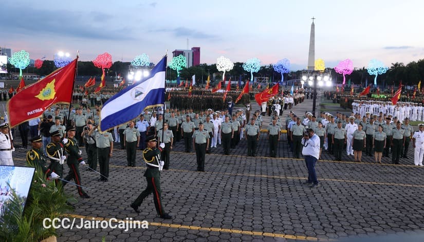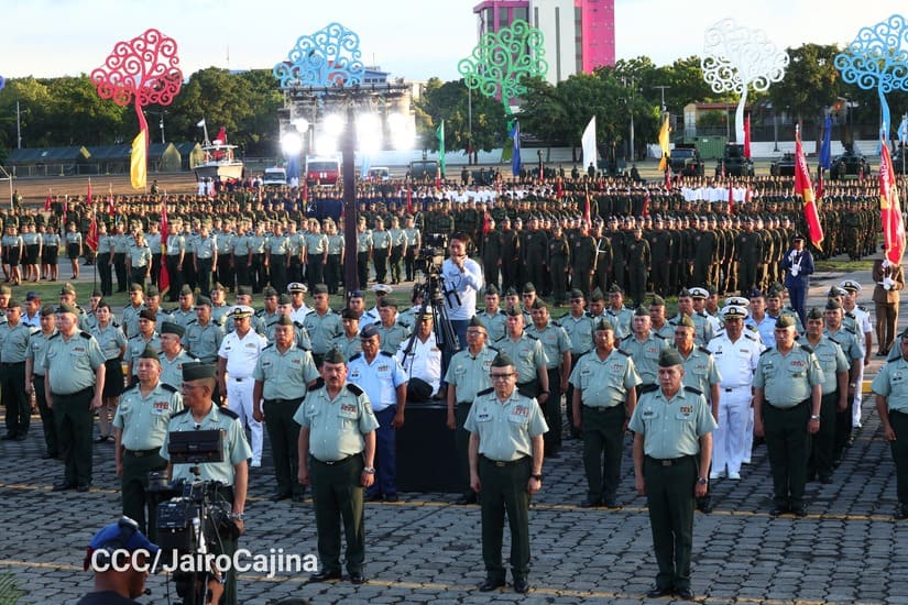 Desde la Plaza la Fe “San Juan Pablo II”, el Presidente de la República, Comandante Daniel Ortega Saavedra y la Vicepresidenta Compañera Rosario Murillo, presiden este lunes 2 de septiembre, el acto central de los 45 años de honor, gloria y victoria del Ejército de Nicaragua.