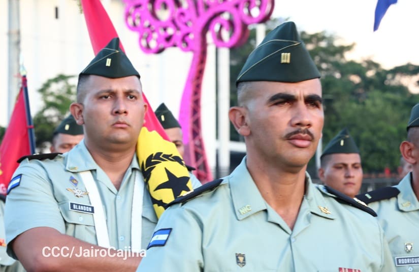 “Organizar y formar el nuevo Ejército de la Nicaragua libre requería de grandes jornadas y entrega plena para vencer nuestras limitaciones con firmeza, con tenacidad, con dedicación y con alto compromiso con la patria. El sacrificio de nuestros Héroes y Mártires no ha sido en vano. Inmensas han sido las responsabilidades y compromisos de activos y retirados de la construcción de este Ejército al servicio de todos. Hoy tenemos y seguiremos teniendo un Ejército del pueblo para defenderlo y protegerlo ante cualquier amenaza, riesgo o agresión”, sostuvo.