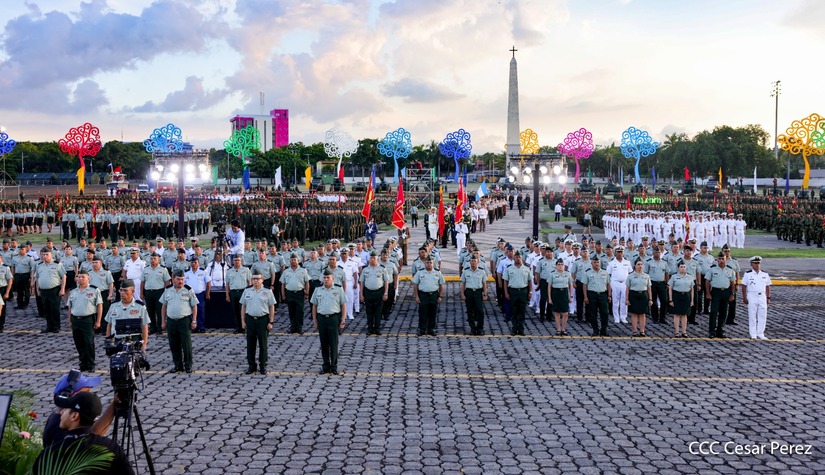 Finalizó diciendo que hoy en el 45 aniversario del Ejército de Nicaragua “es un día propio para homenajear al soldado de ayer, homenajear al soldado de hoy y preparar para que la patria siga, preparar al soldado del futuro para seguir garantizando la independencia, soberanía, la paz y poder ver la sonrisa en el pueblo nicaragüense y en el pueblo de la República Bolivariana de Venezuela, mantenernos unidos el pueblo Venezolano para Nicaragua. ¡Solo unidos venceremos!”.