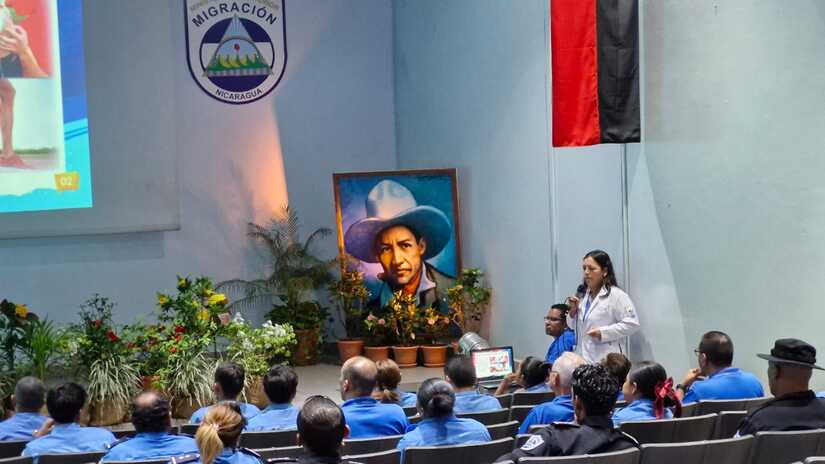 Jenny Haydee López Chavarría, médico de las instalaciones centrales del MINT, fue la que impartió el taller de las casi 30 cartillas de salud que han venido emitiendo las autoridades nacionales de la salud en Nicaragua.