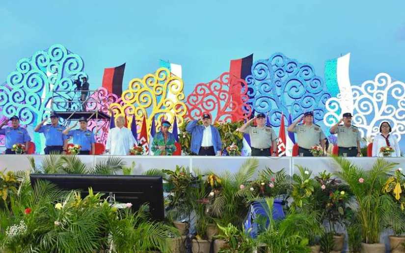 El Comandante en Jefe del Ejército de Nicaragua, destacó: «…este día, con alto sentido patriótico y orgullo institucional, estamos conmemorando el 45 Aniversario de Fundación del Ejército de Nicaragua…hoy tenemos y seguiremos teniendo un Ejército del Pueblo, para defenderlo y protegerlo ante cualquier amenaza, riesgo o agresión, un Ejército que velará siempre por los intereses de nuestra amada Patria, porque el Pueblo depositó en nosotros su esperanza…por mandato constitucional, el Ejército de Nicaragua es la institución armada de la Patria, para la defensa de la soberanía, la independencia y la integridad territorial, en cumplimiento de esta sagrada misión, con patriotismo y valentía nuestros heroicos soldados, pilotos y marineros de manera sostenida patrullan, vuelan y navegan todo el territorio nacional haciendo valer la ley nicaragüense…».