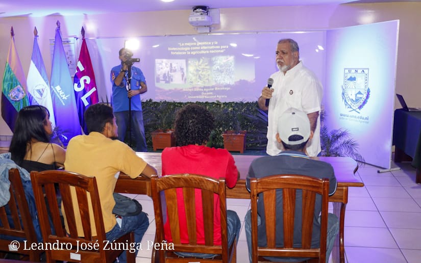 El vicepresidente de la dirección de ciencias agrícolas de UNEN, Clark López, explicó que esta conferencia se refiere al mejoramiento genético en los cultivos “y es importantes que estén los estudiantes de ingeniería agronómica e ingeniería en sanidad vegetal, para que ellos conozcan el beneficio de la mejora genética de los cultivos, que estas pueden ser mayor resistencia a plaga, mejorar los rendimientos y mejorar la calidad de los granos o fruta”.