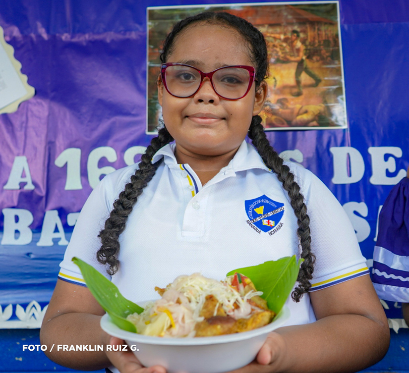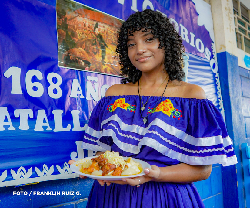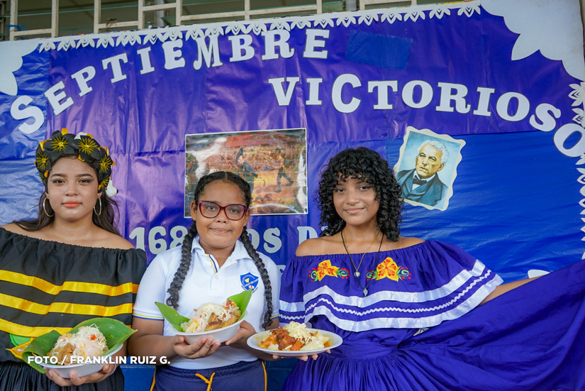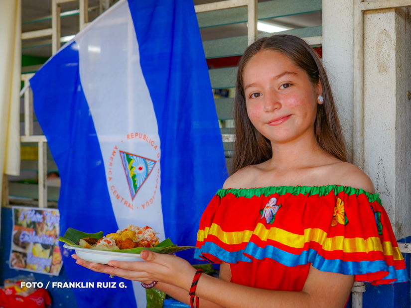 “Hoy es un día especial, celebramos a la patria con la exposición de los platillos propios de nuestra cultura, los estudiantes han traído platillos como nacatamal, chancho con yuca, gallo pinto, es importante que nuestros niños conozcan esos aspectos gastronómicos que nos identifican como nicaragüenses”, refirió Ángela Aguilar, docente.