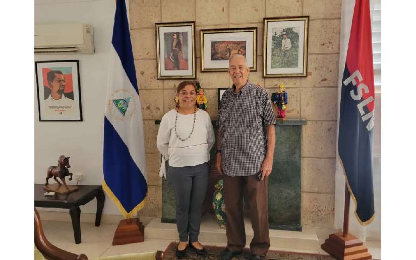Ayer 5 de Septiembre la Embajada de Nicaragua en Cuba acogió la visita del Compañero Hedelberto López Blanch, Periodista e Intelectual cubano, quien en los años 80, fue Corresponsal permanente de Juventud Rebelde en Nicaragua y trabajó en la redacción del Diario Barricada entre 1985 y 1987, autor de varios libros, entre ellos Cuba, pequeño Gigante contra el Apartheid y más recientemente “El renacer de las Cigarras” sobre las Mujeres que enfrentaron la dictadura argentina.