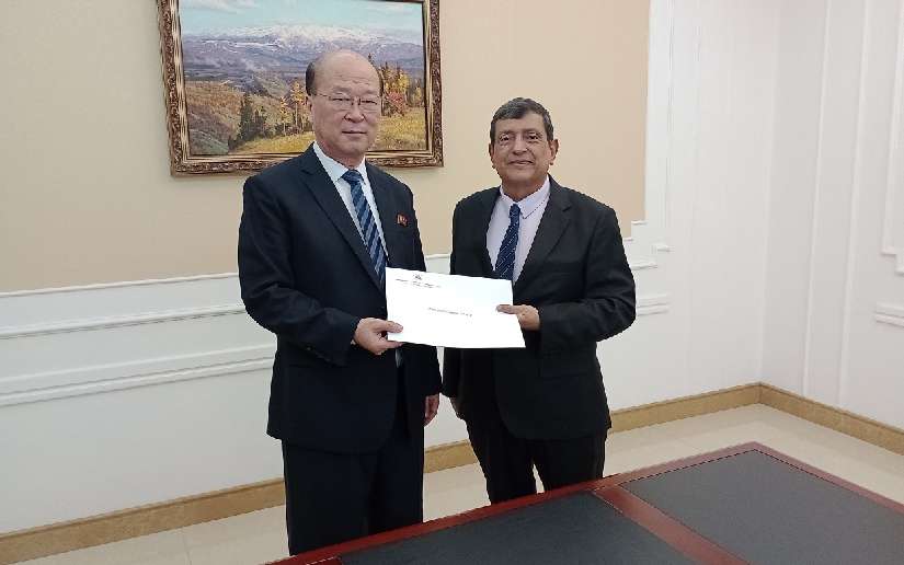 Expresó el Vicecanciller Ra Yun Bak, que entregarán la Misiva al Mariscal Kim Jong Un, Presidente de la República Popular Democrática de Corea, quien muestra gran interés en fortalecer las relaciones entre nuestros dos Países, los que compartimos una causa de lucha común contra el Imperialismo.