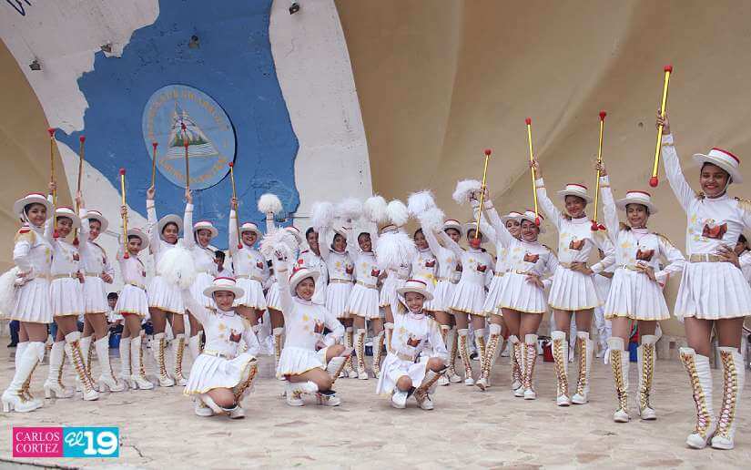 La actividad inició con el Himno Nacional, “Salve a ti, Nicaragua”, ejecutado por el Ensamble de Bandas Rítmicas del Departamento de Managua, seguido de la interpretación Nicaragua Mía , acompañados por el Grupo de Danza del Colegio Experimental México.