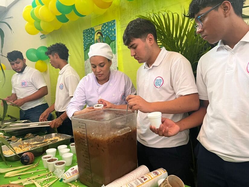 El estudiante de cocina y gastronomía nivel 1, Michael Francisco Vega, comentó que el maíz es la base de la gastronomía nicaragüense “realizamos una exhibición de güirila, acompañada de cuajada, una comida típica, ya que la base de nuestra gastronomía es el maíz, de donde se elaboran las tortillas, tamales, nacatamales”.