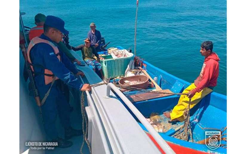 El Ejército de Nicaragua consecuente con el lema de que “Somos el Pueblo mismo uniformado trabajando en su propio beneficio”, el 10 de septiembre de 2024, a través del Distrito Naval Pacífico, realizó acompañamiento a funcionarios del Instituto Nicaragüense de la Pesca y Acuicultura (INPESCA), con el objetivo de realizar control a la documentación de las embarcaciones que realizan faena de pesca en la comunidad Aserradores, municipio de El Viejo, departamento de Chinandega.