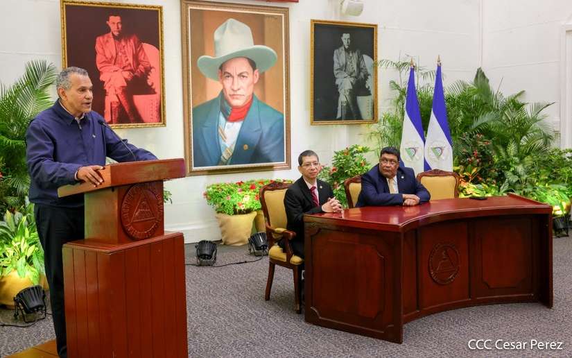 Compañeros y Compañeras del Gobierno de Reconciliación y Unidad Nacional y de los Medios de Comunicación del Poder Ciudadano, Permítanme iniciar transmitiendo los saludos fraternos del Comandante Daniel Ortega, Presidente de la República de Nicaragua y de la Compañera Vicepresidenta, Rosario Murillo.