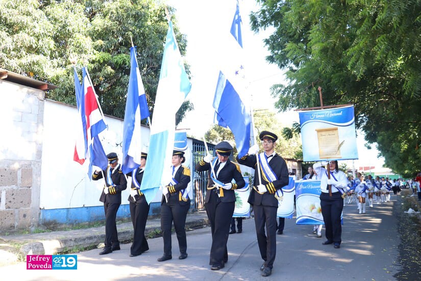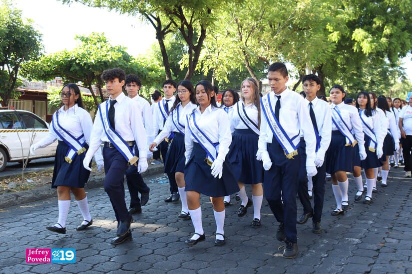 El desfile incluyó bandas rítmicas, presentaciones artísticas y otros actos que resaltaron los valores nacionales, recibiendo aplausos y reconocimiento por parte de la comunidad y autoridades presentes.