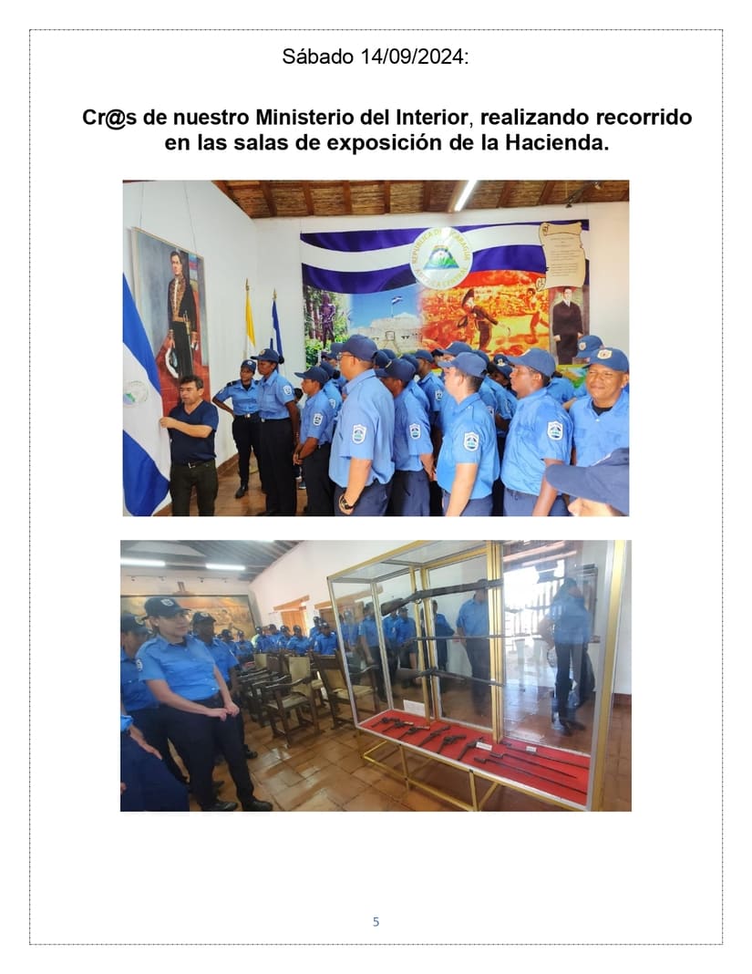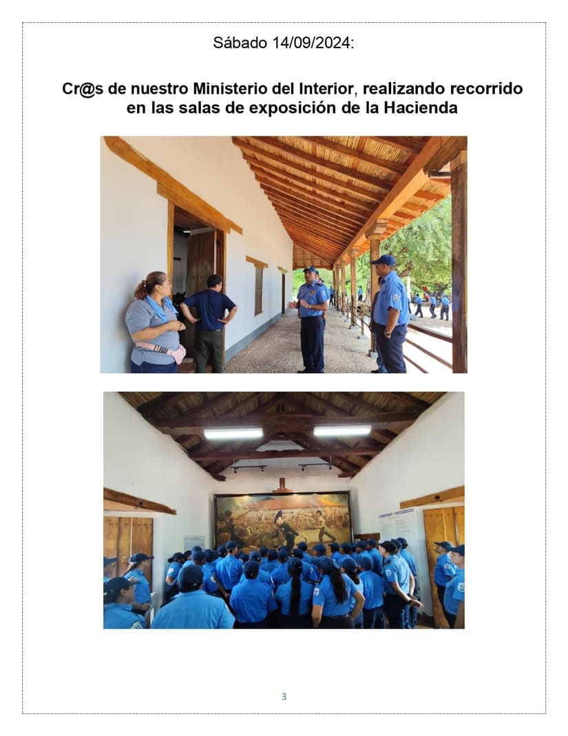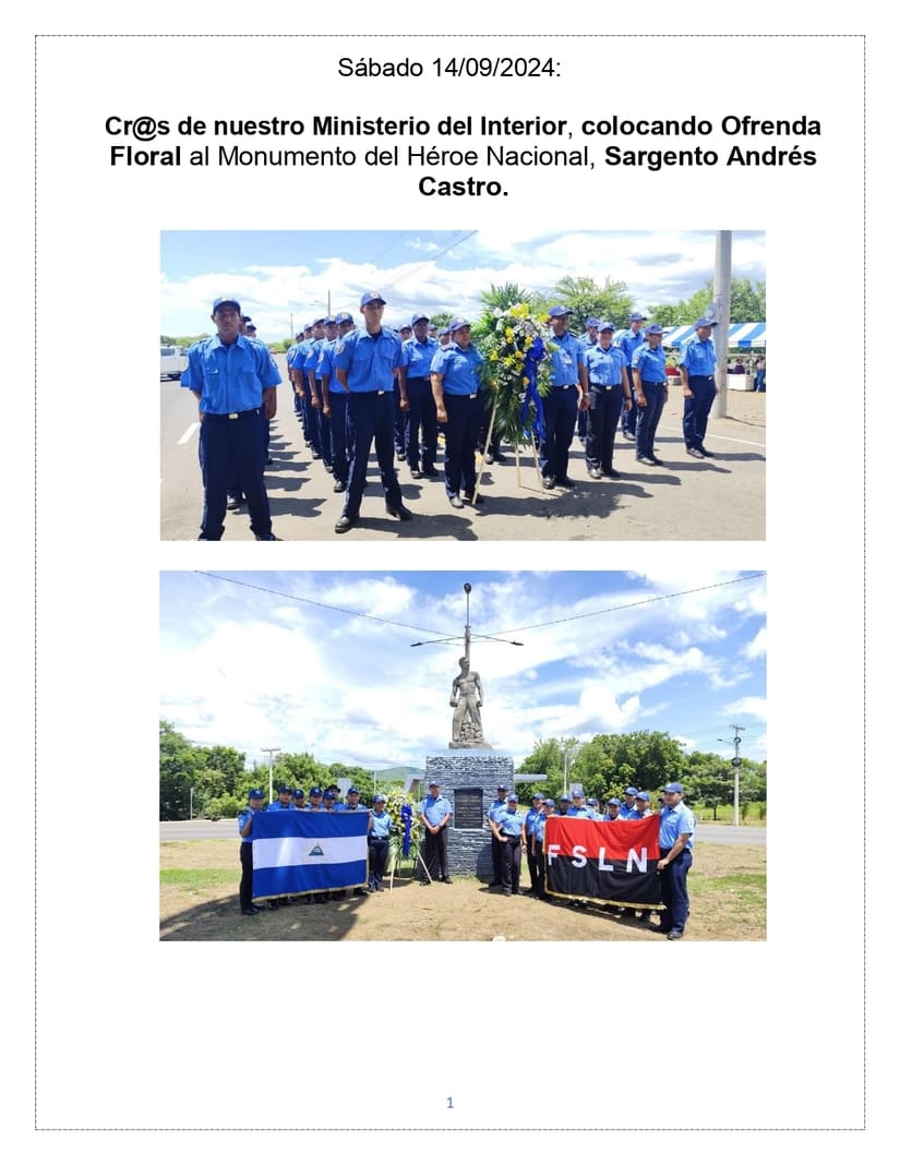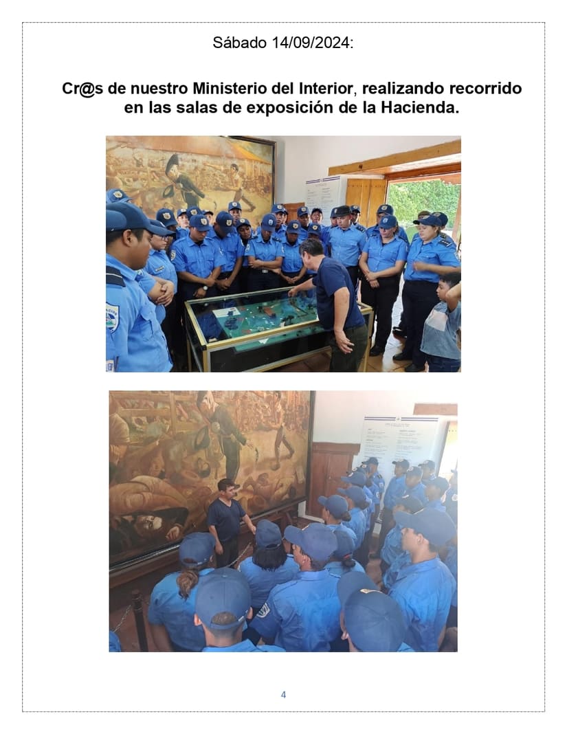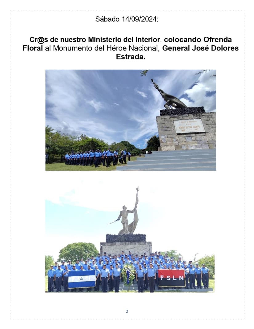Compañeros del Ministerio del Interior, Sistema Penitenciario, Bomberos Unidos, Migración y Extranjería y estudiantes de nuestras escuelas, realizaron visita a la Casa Hacienda San Jacinto, donde colocaron Ofrendas Florales a los Monumentos de los Héroes Nacionales, General José Dolores Estrada y Sargento Andrés Castro. Y efectuaron un recorrido en las salas de exposición de la Hacienda, para conocer los hechos, acontecimientos, personajes y el significado de la Batalla de San Jacinto.