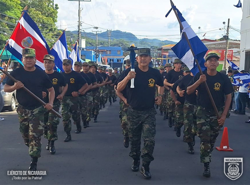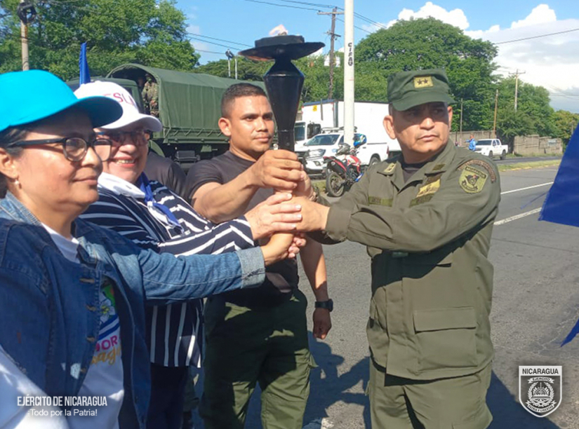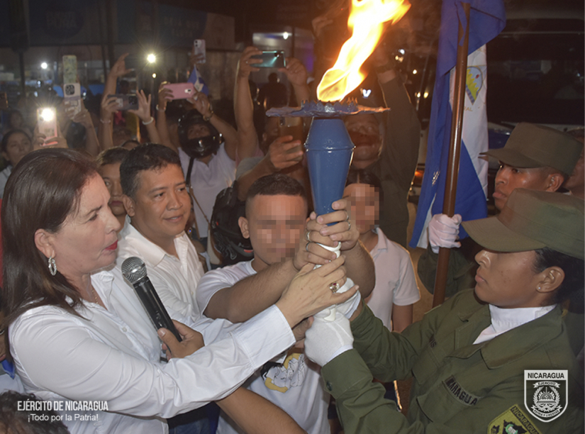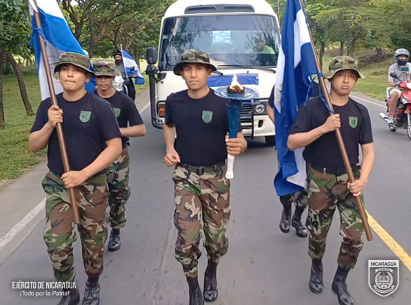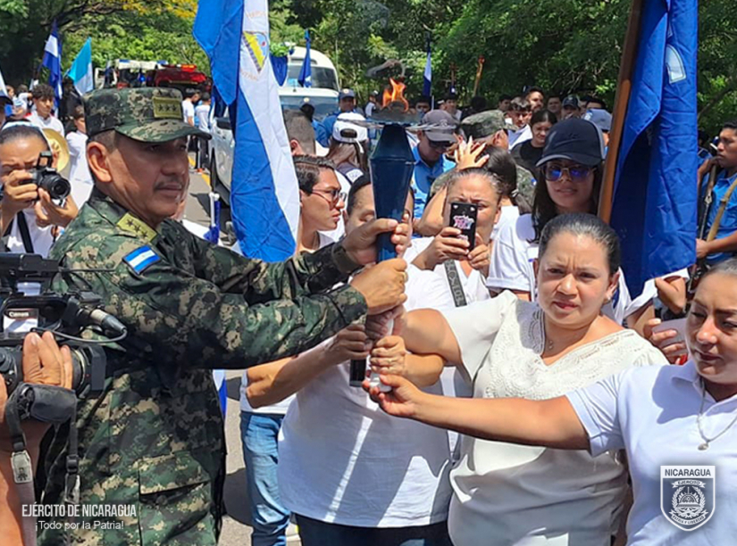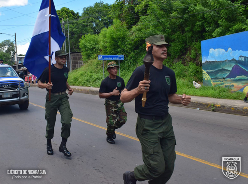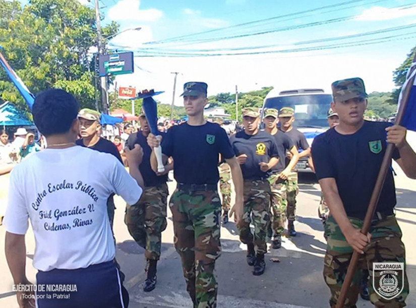 El Ejército de Nicaragua consecuente con el lema de que “Somos el Pueblo mismo uniformado trabajando en su propio beneficio”, en cumplimiento a la Jornada Conmemorativa “Fiestas Patrias”, del 10 al 13 de septiembre de 2024, a través del 1, 4 y 6 Comando Militar Regional, el Centro Superior de Estudios Militares “General de División José Dolores Estrada Vado”, Escuela Nacional de Adiestramiento Básico de Infantería “Soldado Ramón Montoya” (ENABI) y la Fuerza Aérea, en coordinación con el Ministerio de Educación (MINED), participaron en la recepción, traslado y entrega de la Antorcha de la Libertad Centroamericana, misma que ingresó al territorio nacional por el Puesto de Control Fronterizo de Las Manos, departamento de Nueva Segovia y se entregó en la frontera sur de Peñas Blancas, municipio de Cárdenas, departamento de Rivas.