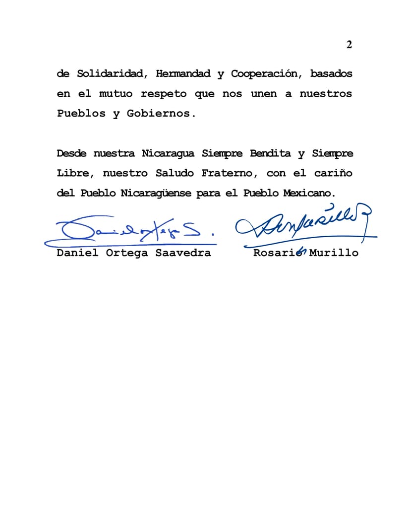 Desde nuestra Nicaragua Siempre Bendita y Siempre Libre, nuestro Saludo Fraterno, con el cariño del Pueblo Nicaragüense para el Pueblo Mexicano.