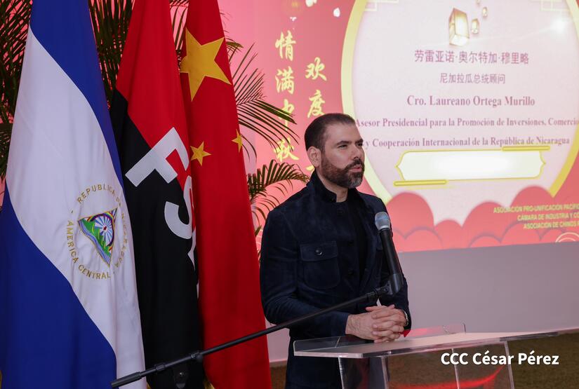 “Queremos trasladarles el saludo fraterno y caluroso del Presidente Comandante Daniel Ortega Saavedra y de nuestra Vicepresidenta, la Compañera Rosario Murillo, en esta fecha tan especial, trasladar ese saludo en primer lugar al Presidente de la República Popular China, Xi Jinping, al Partido Comunista de China, a su gobierno y por supuesto a su pueblo que está representado aquí en todos ustedes ciudadanos chinos que están ya residiendo en Nicaragua, desarrollando importantes actividades que aportan al crecimiento económico y social, al desarrollo de nuestro país”, expresó Laureano Ortega, Asesor para Inversiones, Comercio y Cooperación Internacional de la Presidencia de la República.