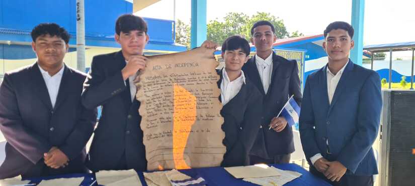 Estudiantes y docentes del Colegio Luxemburgo, autoridades del Ministerio de Educación (Mined) realizaron la lectura del Acta de la Independencia en el 203 aniversario de su firma, para ello, la comunidad educativa recreó ese importante momento de la historia de los países centroamericanos.