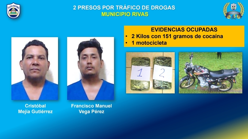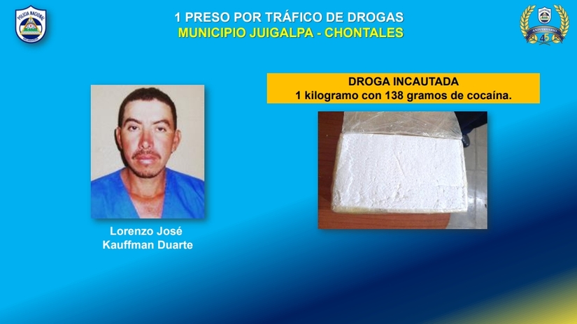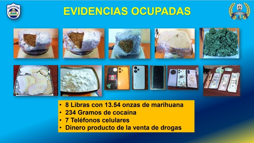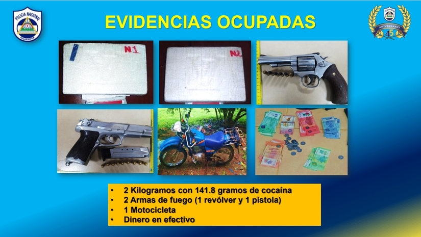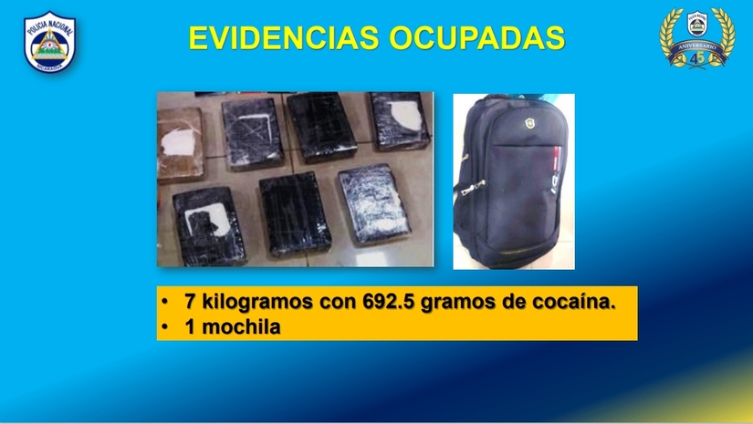 "El día martes 10 de septiembre de 2024, fue retenido en el puesto fronterizo de Peñas Blanca municipio de Cárdenas, departamento de Rivas, venía de Costa Rica, se le ocupó una mochila con siete paquetes rectangulares con cinta adhesiva, los que con la prueba de campo se comprobó que era cocaína y, en total, pesaron 7 kilogramos con 692 gramos de cocaína; la evidencia ocupada fueron los 7 kilogramos con 692 gramos de cocaína y una mochila", puntualizó.