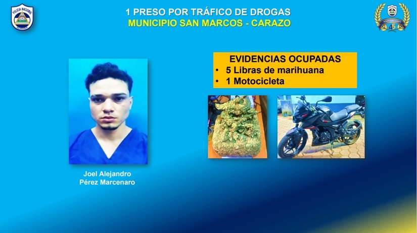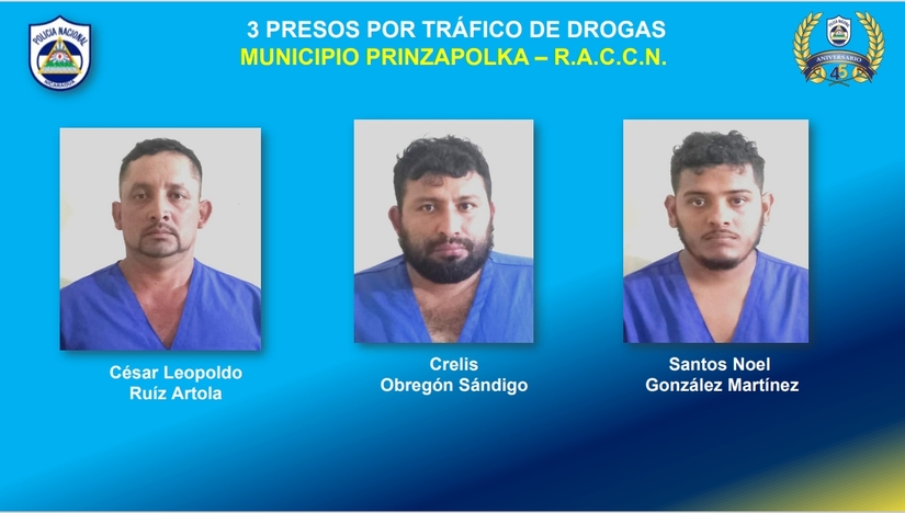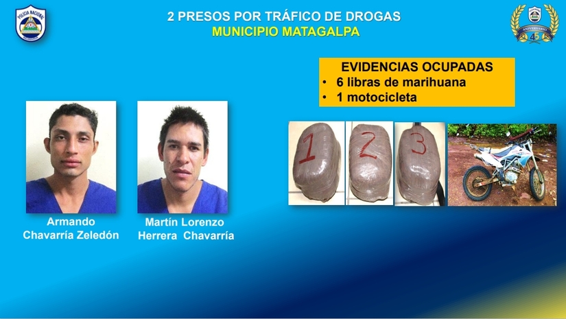Dos sujetos fueron capturados por tráfico de droga en Rivas; otros tres en la Región Autónoma de la Costa Caribe Norte (RACCN); otro sujeto fue detenido en Juigalpa; Chontales, dos en Matagalpa; dos más en Managua; uno en el departamento de Carazo.