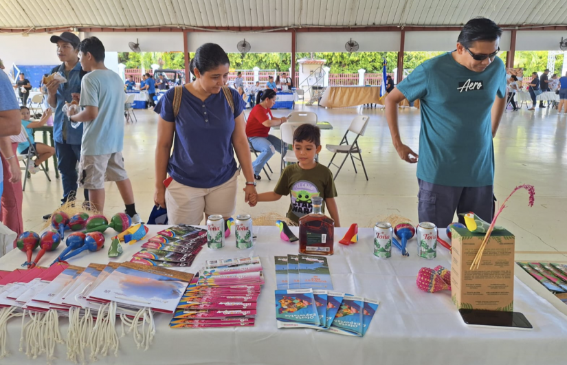 Nuestra Sede Diplomática colocó un stand para exhibir y distribuir entre los asistentes al evento, información turística y suvenires como chischiles, maracas, coloridos pajaritos y pescaditos elaborados por las manos laboriosas de artesanos nacionales con madera de balsa.