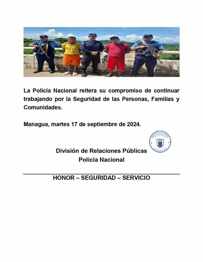La Policía Nacional informa al pueblo de Nicaragua: