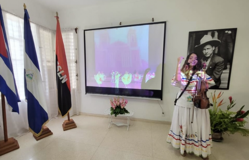 La actividad en la que también se mostraron videos de nuestra Nicaragua, su gente, su trabajo, su cultura, sus paisajes, su música, tradiciones y bailes tradicionales de nuestro Patrimonio Cultural, concluyó con una serenata a la Patria Libre, de música del cancionero nicaragüense, como Alforja Campesina, Zanatillo, A la libertad del Pueblo, Nicaragua mía, entre otros, cantadas por nuestra comunidad en Cuba, finalizando con Viva Nicaragua Libre !