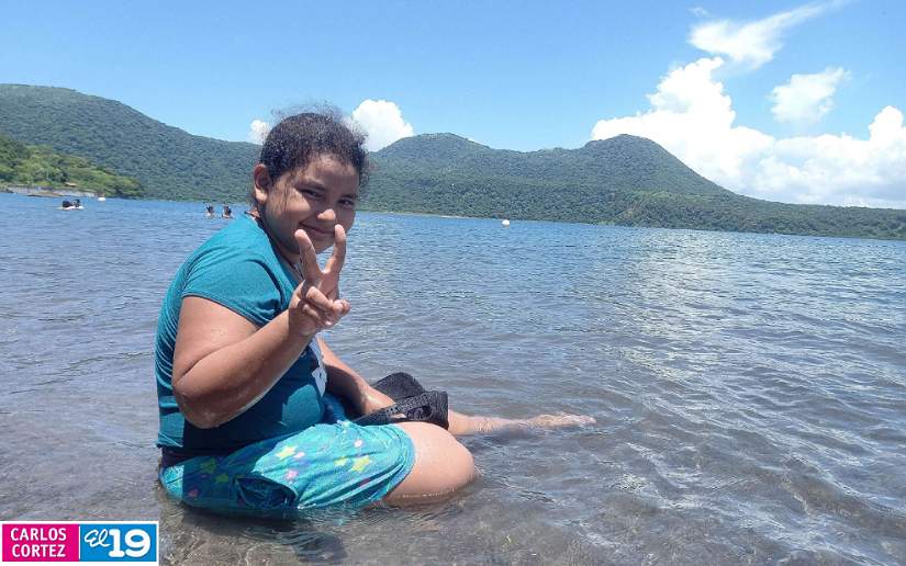 “Aquí pasándola bien con mis hermanas, mis hijos y sobrinos. Yo soy de San Carlos Río San Juan y aproveché para venir a Xiloá y disfrutar del ambiente tranquilo, cálido y agradable, aprovechando las vacaciones para pasar en familia”.