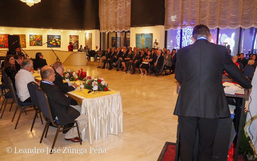 Navarro brindó el mensaje de apertura, destacando la misión y visión de la Academia de Geografía e Historia, fundada por un grupo de historiadores e intelectuales, preocupados por la geografía y la historia nacional, tras la destrucción de la capital por el terremoto del 31 de marzo de 1931.