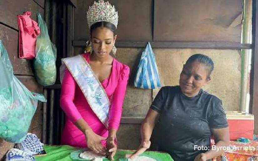 Reina Nicaragua Nicole Luzbianka Hodgson Rodríguez con su mamá Julia Rodríguez, originarias de El Rama.