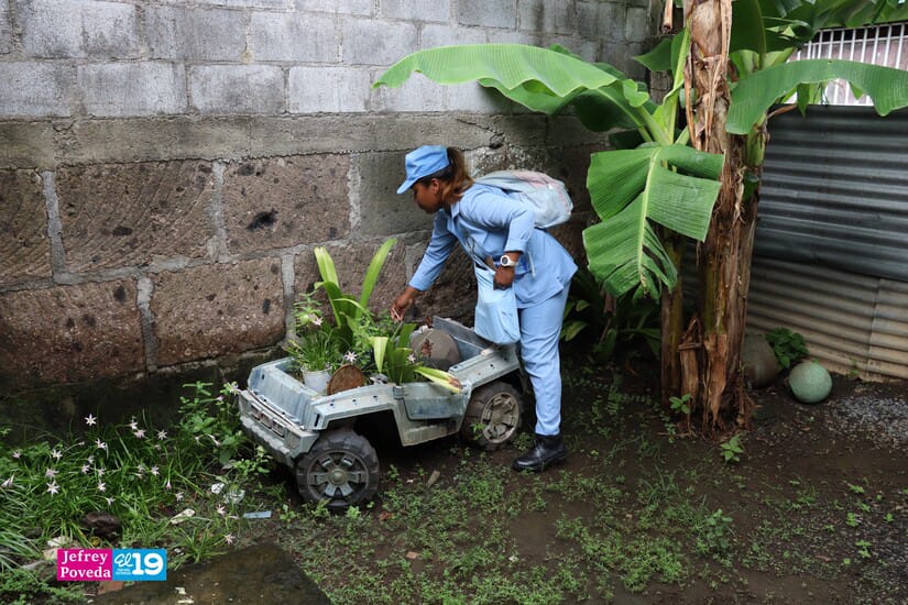 "Estamos en la jornada de abatización, en la lucha antiepidémica para combatir las enfermedades como dengue, zika y chikungunya. Estamos visitando cada uno de los hogares del barrio Alexis Argüello del distrito siete de Managua", explicó.
