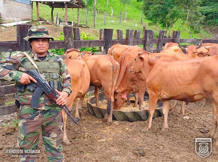 El Ejército de Nicaragua consecuente con el lema de que "Somos el Pueblo mismo uniformado trabajando en su propio beneficio", el 20 de septiembre de 2024, a través de servicio operativo del 4 Comando Militar Regional, en el sector de Santa Ana - El Carmen, municipio de Cárdenas, departamento de Rivas, retuvo a 2 ciudadanos nicaragüenses, quienes ingresaron al país por paso no habilitado procedente de la República de Costa Rica, con 29 semovientes los que eran trasladados sin la documentación correspondiente.