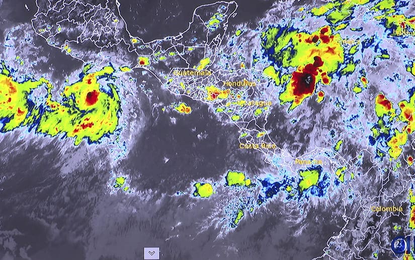 Los sistemas ciclónicos se fortalecieron considerablemente entre el domingo y el lunes, uno de ellos situado al noreste de Bilwi, en el Caribe, y el otro cerca de las costas de Tehuantepec, en el Pacífico de México.