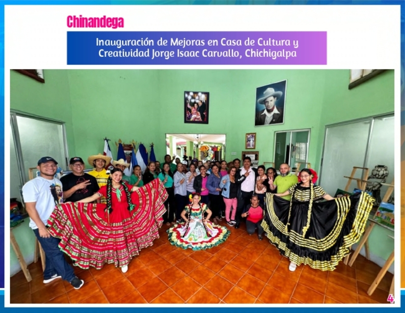 • Chichigalpa, inauguración de mejoras en Casa de Cultura y Creatividad Jorge Isaac Carvallo: cursos de Danza, Dibujo, Pintura, Instrumentos Musicales y Coro.