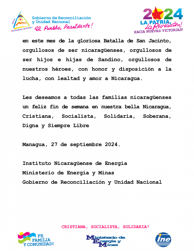 Managua, 27 de septiembre 2024.