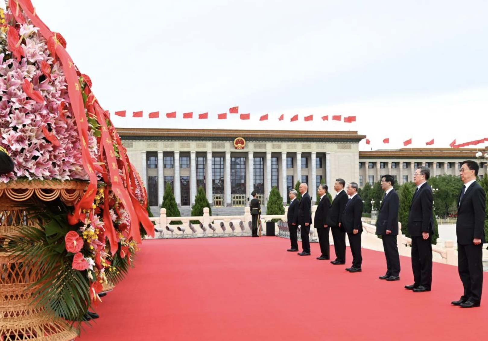 Hacia las 10:00 horas de la mañana, Xi y otros líderes, a saber, Li Qiang, Zhao Leji, Wang Huning, Cai Qi, Ding Xuexiang, Li Xi y Han Zheng, llegaron a la plaza. A ellos se unieron representantes de todos los ámbitos de la sociedad.