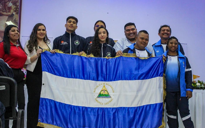 Reporte Fotográfico del Abanderamiento de las Delegaciones Nacionales que participarán de los Juegos Deportivos Estudiantiles (del 02 al 11 de Octubre en El Salvador) y Juegos Latinoamericanos de Olimpiadas Especiales (del 03 al 13 de Octubre en Paraguay); la cual se realizó el día de ayer desde el Instituto Nicaragüense de Deportes en el Salon CONADERFI a partir de las 06:00 P.M.