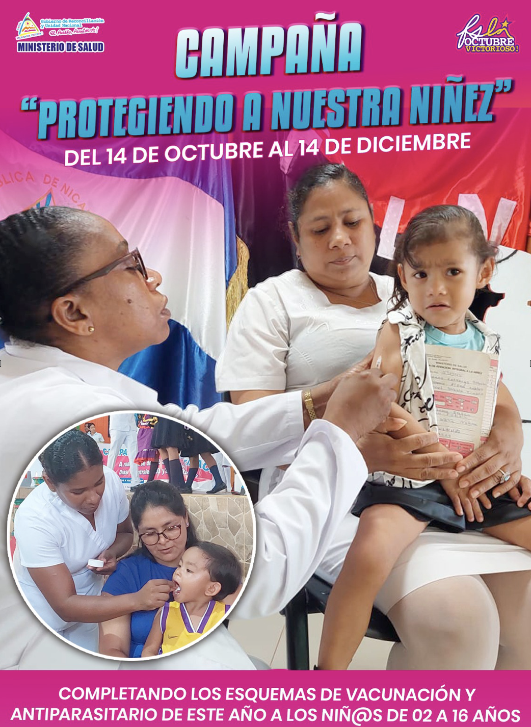 Nuestro Gobierno Sandinista, los Trabajadores de la Salud y la población nicaragüense, desarrollaremos esta Campaña en las escuelas y visitas casa a casa para garantizar la protección de tod@s nuestr@s Niñ@s.