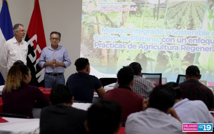 Dijo que Nicaragua está muy bien con el enfoque regenerativo con el cultivo del plátano (con plantas invitro) y esto viene a desarrollar este cultivo para fomentar y extender la producción de plátanos, ya que ahora “somos exportadores de este rubro”.